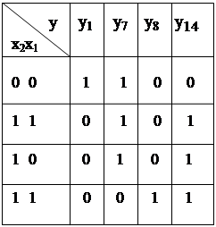 В таблице истинности: y1 – функция Пирса y7 - функция Шеффера y8 - функция И y14 – функция ИЛИ