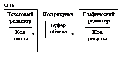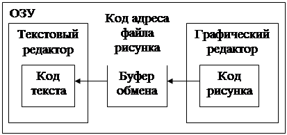 Операционная система Windows 98 позволяет создавать комплексные документы, содержащие несколько разных типов данных. Например, рисунок, созданный в графическом редакторе Paint, можно включить в текстовый документ, разрабатываемый в текстовом процессоре Word. При этом возможны две технологии – внедрения и связывания, которые существуют под общим названием OLE-технологии (Object Linking and Embedding). Появлению этой технологии способствовало свойство многозадачности, присущее Windows 98, поскольку при параллельном исполнении задачи одновременно находятся в ОЗУ и могут обмениваться данными.