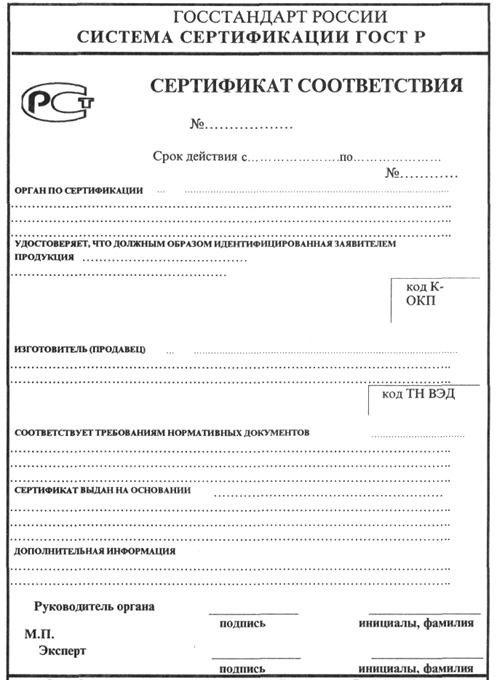 Рисунок 1.2 – Форма сертификата соответствия