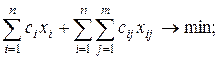 В целевой функции первое слагаемое характеризует производственные затраты, а второе слагаемое – транспортные расходы. Условие (а) означает, что произведенный предприятиями продукт полностью отправляется потребителям. Условие (б) означает, что потребности пунктов B 1, B 2, …, Bm полностью удовлетворяются. В сформулированной оптимизационной задаче переменные