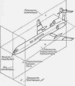 Рис.1. Расположение основных координатных осей и плоскостей самолета
