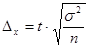 Величина D=s называется средней или стандартной ошибкой выборки. Произведение ts называется предельной ошибкой выборки. Можно доказать, что предельная ошибка выборки может быть найдена по формуле Из формулы (1) видно, что предельная ошибка "D" зависит от трех факторов: 1) от силы вариации анализируемого показателя, что отражается в виде дисперсии "s2", причем, чем выше сила вариации, тем больше ошибка; 2) от объема выборки "n", причем, чем боше объем выборки, тем меньше ошибка; 3) от значения коэффициента доверия "t", который связан со значением вероятности Р. Значение предельной ошибки Dx зависит не только от объема выборки n, но и от доли выборки относительно объема N генеральной совокупности. Величина Если известны дисперсия s2 и коэффициент доверия t, то из формулы (1) можно получить формулу для расчета объема выборочной совокупности