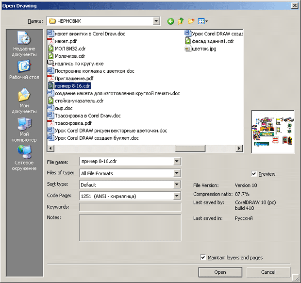 После нажатия на кнопку ОК документ будет создан. Для продолжения работы с ранее созданным документом служит команда File(Файл)-Open(Открыть) – рис. 2.2.