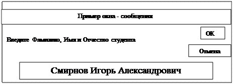 Рис. 63. Окно вывода с кнопками 8.11.3. Диалоговые окна пользователей Состав пиктограмм панели инструментов Формы имеет вид, приведённый в табл. 7. В диалоговом окне могут размещаться элементы произвольного вида, которые сознают наборы объектов. Доступ к конкретному элементу – по имени набора и имени или порядковому номеру элемента внутри набора. Метки – не могут редактироваться пользователем в процессе работы с диалоговым окном, но могут изменяться программным путем с помощью свойства Caption объекта Labels() Пример. Sheets(“<имя_листа_диалога>”). Labels (“<имя_объекта_метки>”). Caption = “строка_текста” Поле ввода – является многострочным, содержит текст, который можно корректировать. Поле ввода входит в набор EditBoxes(), его можно редактировать и программным способом. Пример. Sheets(“<имя_листа_диалога>”). EditBoxes (“<имя_окна>”). Text = “строка_текста” Таблица 7 Перечень пиктограмм
