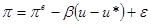 мұнда: π – инфляцияның нақты деңгейі, πе – күтілетін инфляция деңгейі, u – жұмыссыздықтың нақты деңгейі, u* – жұмыссыздықтың табиғи деңгейі, ε – ұсыныс шоктары, β – эмпирикалық коэффициент, 0-ден жоғары,инфляцияның циклдік жұмыссыздыққа реакциясын көрсетеді. Өткен ғасырдың 70-ші жылдары әр түрлі елдерде инфляцияның жоғарғы қарқынымен қатар жұмыссыздықтың да жоғарғы деңгейі байқалды, ал 80-ші жылдары инфляцияның төмендеуімен қатар жұмыссыздық деңгейі де төмендеді. Бұл жағдай жұмыссыздықтың табиғи деңгейінің қисығы арқылы түсіндірілді. Яғни ұзақ мерзімді кезеңде Филлипс қисығы тік болады
