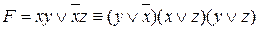 Нормальная форма – это синтаксически однозначный способ записи формулы, реализующей данную функцию. Пользуясь известными законами логики, всякую формулу можно преобразовать в равносильную ей формулу вида Пример 3.1: В больших формулах или при многократных преобразованиях принято знак конъюнкции опускать (по аналогии со знаком умножения): Такая форма называется дизъюнктивной нормальной формой (ДНФ). Отдельный элемент ДНФ называется элементарной конъюнкцией или конституентой единицы. Аналогично любую формулу можно привести к равносильной ей формуле, которая будет являться конъюнкцией элементов, каждый из которых будет представлять собой дизъюнкцию логических переменных со знаком отрицания или без него. То есть, каждую формулу можно привести к равносильной ей формуле вида Пример 3.2: Отдельный элемент КНФ называется элементарной дизъюнкцией или конституентой нуля. Очевидно, что каждая формула имеет бесконечно много ДНФ и КНФ. Пример 3.3: Найдем несколько ДНФ для формулы 1) 2) 3) 4) 5)