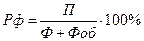 Где П – прибыль от производства продукции (общая или скорректированная на сумму налога на прибыль) З - полная себестоимость произведенной продукции. Этот показатель характеризует сколько предприятие имеет прибыли с каждого рубля вложенного в производство продукции, работ услуг. Рентабельность так же может быть рассчитана не только по произведенной, но и по реализованной продукции. 3) Рентабельность производственного капитала, которая показывает насколько эффективно используются производственные фонды предприятия.