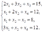 при которых целевая функция Приведем систему к каноническому виду введением дополнительных переменных: