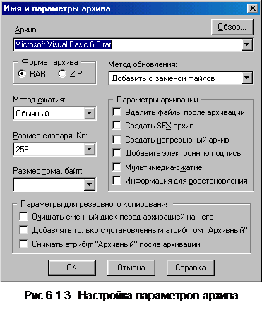 Для архивации файлов в среде Windows разработаны две программы WinZip и WinRAR. Программа WinRAR имеет более удобный интерфейс (рис. 6.1.2). Алгоритм работы при архивации и разархивации файлов также предельно прост.