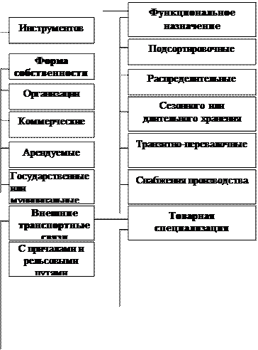 5) Логистические функции «складирование» и Охватывает процессы формирования складской сети, эффективного функционирования складского хозяйства и управления логистическим процессом на складе. Современный крупный склад- это сложное техническое сооружение, которое состоит из многочисленных взаимосвязанных элементов, имеет определенную структуру и выполняет ряд функций: 1. Преобразование производственного ассортимента в потребительский в соответствии со спросом; 2. Выравнивание интенсивности материальных потоков в соответствии со спросом потребителя; 3. Хранение запасов; 4. Унитизация (объединение) грузов; 5.Предоставление услуг, например, подготовка товаров для продажи (фасовка продукции, заполнение контейнеров, распаковка и т. д.); проверка функционирования приборов и оборудования, монтаж; придание продукции товарного вида, предварительная обработка; транспортно-экспедиционные услуги и т.д. Классификация складов приведена на рис. 4.4. В складировании решается три вида задач: 1) задачи проектировочного характера, а именно: задачи выбора количества складов, размера (мощности) складских сооружений, выбора формы собственности складов и форм снабжения в складской сети (централизованное или децентрализованное); 2) задачи, так называемого, микропроектирования, когда разрабатываются компоновочные решения складских площадей и объемно-планировочные решения зоны основного хранения. 3) задачи организации логистического процесса на конкретном складе. Логистический процесс на складе весьма сложен, поскольку требует полной согласованности функций снабжения запасами, переработки груза и физического распределения заказов. Схема логистического процесса на складе показана на рис.4.5. Для решения данных задач складирования требуется выбрать вид складирования, позволяющий наиболее полно использовать объем склада. Различают следующие виды складирования:
