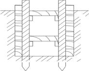 Існує три типи кріплень залежно від розташування дощок: - заставні кріплення у вигляді горизонтальних дощок, розташовуваних за вертикальними стійками, утримуваними розпірками; - заставні кріплення у вигляді вертикальних дощок, розташовуваних за горизонтальними прогонами, утримуваних розпірками. До цього типу належать забійні вертикальні кріплення, коли нижні кінці вертикальних дощок забивають у ґрунт; - шпунтові кріплення у вигляді вертикальних дощок, що щільно примикають один до одного за допомогою пазів і гребенів. Кріплення підрозділяються також за характером розташування елементів, що втримують стійки й прогони: - розпірні – стійки або палі втримують у вертикальному положенні за допомогою розпірок; - анкерні – палі втримують у вертикальному положенні анкерами, закріпленими до верхніх кінців паль; - підкісні – стійки або палі втримуються у вертикальному положенні за допомогою підкосів; - рамні – замість розпірок і стійок приймаються дерев'яні рами. При невеликій глибині виїмок (до 3 м) найбільш доцільні інвентарні кріплення. Вид кріплення варто вибирати залежно від стану ґрунтів: при природній вологості (за винятком сипучих) допускають горизонтальні кріплення із просвітом через дошку; при підвищеній вологості й сипучих – суцільні вертикальні або горизонтальні кріплення; для ґрунтів із сильним припливом ґрунтових вод – шпунтові огородження із забитими дошками у дно траншеї або котловану на глибину не менш 0,75 м. Неінвентарні кріплення влаштовують із дощок товщиною не менш 4 см (при ґрунтах природної вологості) і не менш 5 см (при піщаних ґрунтах і ґрунтах підвищеної вологості). Дошки закладають за вертикальні стійки впритул до ґрунту. Стійки закріплюють у вертикальному положенні розпірками, відстань між стійками приймають не менш 1,5 м. По вертикалі розпірки встановлюють один від одного не більш ніж через 1 м. На глибині траншеї й котлованів більше 3 м потрібно розробляти проект кріплення й виконувати розрахунок на міцність.