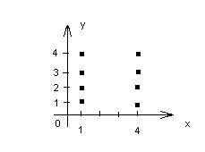 Пусть у нас имеется два элемента a 1 и a 2. Пара (a 1, a 2) называется упорядоченной. 1-ый элемент ее – a 1, 2-ой – a 2. Пары (a 1, a 2) и (b 1, b 2) считаются равными, если a 1 = b 1, и a 2 = b 2. Пара (a 1, a 2) = (a 2, a 1), если только a 1= a 2. Пусть заданы два множества А = { a 1, a 2,…, an } и В = { b 1, b 2,…, bm }. Декартовым, или прямым, произведением множества А на множество В называется множество упорядоченных пар, 1-ый элемент которых принадлежит множеству А, а 2-ой – множеству В. Обозначается декартово произведение знаком ´. Для данных множеств получим А ´ В ={(a 1, b 1),(a 1, b 2),…,(a 1, bm),…,(a 2, b 1),…,(an, bm)}. Мощность декартового произведения равна n× m. Обозначение: | A ´ B | = n × m. Пример 1: A = {1, 4} и В = {2, 3, 4}. A ´ B ={(1,2),(1,3),(1,4),(4,2),(4,3),(4,4)}. Геометрически каждой паре чисел соответствует точка координатной плоскости.