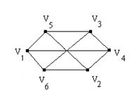 Если вершину V2 разместить в углу, то ока не будет смежна с V 6. Если вершину V2 разместить в средине, то ока не будет смежна с V4. Ничего нового не будет, если разместить V 1 в любом углу. Разместим V1 в средине. Тогда смежные вершины V4, V5, V6 расположатся по углам и в средине.