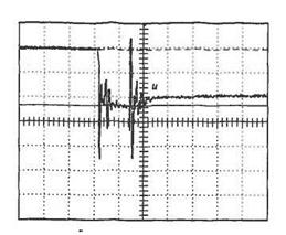 Рис. 6.45. Осциллограмма напряжения к на варисторе: от, = 3,7 кА/дел.; отц = 800 В/дел.; /я, = 10 мкс/дел
