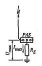 Воздействие электромагнитного поля молнии на линии электропередачи или сооружения Рассматриваемое воздействие имеет важное значение для распределительных линий низкого и среднего напряжения, поскольку на таких линиях возможно возникновение пробоев изоляции, вызванных индуцированными грозовыми перенапряжениями. Результатом индуцированных перенапряжений является бегущий импульс тока и напряжения, распространяющийся по пинии подобно импульсам, вызванным прямыми ударами молнии в ВЛ. Амплитуда импульса напрямую зависит от расстояния от места удара молнии в землю до линии, возрастает при увеличении высоты линии и заметно уменьшается вследствие экранирования заземленными молниезащитными тросами, если они имеются. На линиях среднего и низкого напряжения амплитуда бегущего импульса часто превышает напряжение пробоя изоляции, что вызывает ее пробой и срез импульса. В месте ВЛ, ближайшем к месту удара молнии, фронт импульса имеет такой же вид, как и при прямом ударе молнии, в то время как длительность импульса волны заметно меньше и составляет 5-10 мкс. Выводы по поводу искажения формы импульса импульсной короной и пробоями изоляции, сделанные применительно к прямому попаданию молнии в провода ВЛ и обратным перекрытиям, одинаково применимы и к данному случаю. Если сооружение имеет меньшие размеры (длину), чем ВЛ, то и запасаемая им электромагнитная энергия будет меньше. Возмущение же, переданное от сооружения к оборудованию, присоединенному или расположенному в непосредственной близости от сооружения, будет меньше, чем при прямом воздействии поля тока молнии. В этом случае сооружение выступает в роли экрана для излучаемого поля.