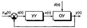 Рис. 2.8. Упрощенная структурная схема системы управления с обратной связью Выходной величиной объекта и всей системы регулирования является управляемая (или регулируемая) величина Одним из входов системы регулирования является задающее воздействие Другим входом системы регулирования является возмущающее воздействие Возмущающие воздействия, приложенные к системе, вызывают отличие между заданным и действительным значениями управляемой величины. Разность между заданным и действительным значением управляемой (регулируемой) величины называют ошибкой регулирования (погрешностью регулирования):