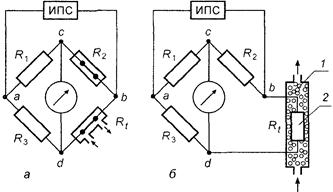 Рис. 108. Измерительные мостовые схемы термохимического газоанализатора: а — с проволочным платиновым каталитическим чувствительным элементом
