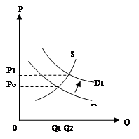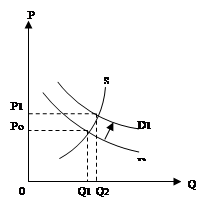 Рисунок 6.12 - Установление нижнего уровня цены приводит к устойчивому избытку продукции Нижний уровень цены Pf, ведет к образованию устойчивого излишка продукции, величина которого измеряется отрезком ОdOs. Правительство должно либо выкупать этот излишек, либо принимать меры к его ликвидации путем ограничения предложения или расширения спроса на данный продукт.