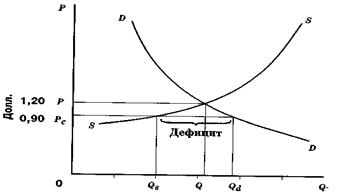 Рисунок 6.11 - Установление потолка цен приводит к устойчивому дефициту