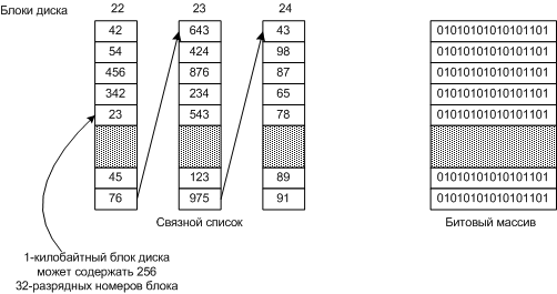 · Битовый массив (бит-карта) - для каждого блока требуется один бит.