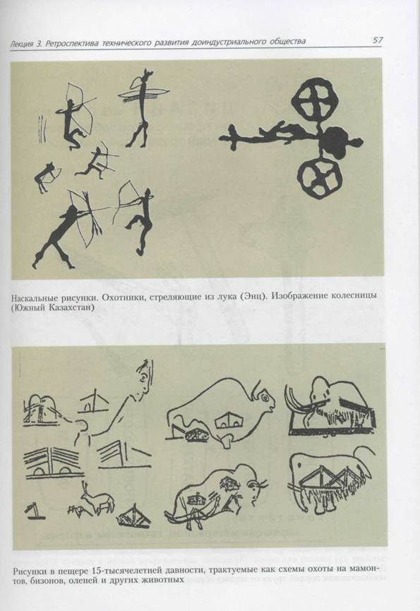 Лекция 3 Лекция 3. РЕТРОСПЕКТИВА ТЕХНИЧЕСКОГО РАЗВИТИЯ И ФОРМООБРАЗОВАНИЯ ПРЕДМЕТНОГО МИРА ДОИНДУСТРИАЛЬНОГО ОБЩЕСТВА В постиндустриальном обществе стало естественным понимать технику как сложные устройства, приборы, агрегаты бытового, производственного и прочего назначения, транспортные средства и так далее с механическими, электромеханическими, электронными, гидравлическими и пр. узлами. Между тем техника (от греч. techne — искусство, мастерство, умение) — совокупность устройств Я средств человеческой деятельности, применяемых в производстве и обслуживав нии непроизводственных потребностей общества для ускорения и облегчения трудовых процессов. Техника — это машины, станки, приборы, инструменты и др.; это здания и сооружения, дороги и каналы, средства общественного транспорта; это и непроизводственное оборудование и инструменты: коммунальное оборудование, холодильники, кухонные и стиральные машины, пылесосы; средства транспорта и связи личного пользования и т.д. Сюда же относят технология ческие процессы, технологию в каком-либо виде деятельности. Это — совокуп* ность наиболее эффективных приемов, методов, способов использования обору-И дования и других технических средств для обработки сырья, материалов и издеЯ лий, получения полуфабрикатов, готовой продукции и т.д. Исторически техникаи прошла путь развития от примитивных орудий труда первобытного человека до сложнейших современных автоматических машин. Корни дизайна уходят в далекую глубь веков и тысячелетий. Среди специалистов нет единого мнения, когда произошло становление «человека современного». Однако они довольно единодушны в отношении перечня критериев отне-1 сения гомо сапиенс к «современным». На первом месте стоят анатомические! признаки, на втором — признаки поведенческие. «Современными» считаются! люди не только владевшие каменными орудиями, но и изготавливавшие более! сложные орудия из костей убитых животных и выловленных рыб. Эти орудия! нельзя было изготовить с помощью отщепов камня, нужна была более сложная! технология: шлифовка, сверление и пр. Самое интересное в контексте нашей темы — чтобы быть отнесенными к «современным», люди должны были уметь рисовать, создавать наскальную и пещерную живопись. Не менее 40 тысяч лет назад произошел скачок в развитии человечества, началось существенное изменение орудий по виду и форме. Полагают, что это стало следствием появления «языка» общения. Человек начал мыслить словами и символами, а не образами. Произошел переход от «инстинктивного разума» к аналитическому мышлению. Рисунки в пещерах пятнадтитысячелетней давности трактуются как схемы, чертежи ловушек на зверей. Налицо зарождение проектного сознания человечества.