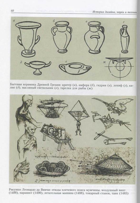 Методика творчества Леонардо да Винчи была сродни современному дизай-1 нерскому проектированию. Он был истинным олицетворением гуманистического идеала, соединяющего науку, технику и искусство в практических целях. Его деятельность и творчество были уже подлинно проектными. Во-первых, глубокий анализ и изучение сферы, в которой ведется поиск! идеи. Так в 1470-е годы Леонардо был настолько увлечен идеей коренного улуч-1 шения ткацкого производства во Флоренции, что забросил все текущие заказы I и полностью погрузился в изучение технологии текстильного дела, всех его тонкостей. К сожалению, его гениальные предложения по самопрялке с механиче-1 ским приводом от водяного колеса и сложным устройством, одновременно кру- \ тящим и наматывающим нить и автоматически останавливающемся при ее раз- { рыве, не были реализованы. Вернувшись во Флоренцию, после того как ему не удалось найти достойного I места для творчества в других городах Италии, в 1499 году Леонардо попытался I воплотить свою заветную мечту по созданию летательного аппарата. Он многие дни наблюдал за полетом птиц, анализировал, делал эскизы, записи (подробнее [ об этом речь пойдет ниже). Его выводы и предложения оказались близки тем, к * которым через 400 лет придут наши соотечественники — ученый Н.Е. Жуков- \ ский и морской офицер А.Ф. Можайский, который также начинал проектирова- \ ние самолета с наблюдения и изучения полета птиц. Во-вторых, вслед за многочисленными эскизами выполнялись чертежи с де-1 тальной проработкой, когда точно вырисовывались детали, тщательно передавалась игра света и тени, чтобы было понятно, что и какого качества надо сделать при отсутствии в то время соответствующих технологий. В-третьих, моделирование, постройка макетов и новые циклы уточнений, до- I работок, текстовых пояснений и т.д. Практически при его жизни ничего из его технических идей и разработан- I ных конструкций не было реализовано. Он опередил свое время на 500 лет. Только наши дни позволили достойно оценить творения гения. Утверждают, что проект летательной машины, оснащенной спиральным винтом, вдохновил И.И. Сикорского (1889—1972) на создание современного вертолета. Цитата из рукописей Леонардо: «... винтовой аппарат, который, если его вращать с большой скоростью, ввинчивается в воздух и поднимается вверх» несомненно может рассматриваться как проект геликоптера. Самый ранний дошедший до нас проект парашюта принадлежит также Леонардо да Винчи. Он писал: «Если человек имеет шатер из полотна шириной 12 локтей и 12 локтей в высоту, то он может прыгать с любой высоты без вреда для себя». Особый интерес Леонардо проявлял к строению глаза, особенностям зрительного восприятия. В изучении оптики он также во многом обогнал своих современников. Он знал, что зрительные образы на роговице глаза проецируются в