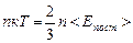 получаем еще одну формулу уравнения состояния газа: р=пкТ (5.3.5) Уравнение состояния содержит в себе, в частности, закон Авогадро, полученный из опыта. Он гласит, что при одинаковых температурах и одинаковых давлениях в одинаковых объемах любых газов содержится одинаковое число частиц. И это же уравнение содержит в себе опытный факт: при нормальных условиях [10] один моль любого газа занимает объем V= 22,4 л. (Вспомните, сколько структурных единиц в 1 моль и оцените, сколько молекул в воздухе того помещения, где Вы сейчас находитесь). § 5.4. Молекулярно-кинетический смысл абсолютной температуры. Средняя энергия теплового движения молекулы 1. Сравним уравнения состояния газа в форме (5.2.3) и в форме (5.3.5). Первое из них получено теоретически в модели идеального газа, второе есть обобщение опыта. Сравнение этих формул раскрывает смысл абсолютной температуры как меры средней энергии теплового движения молекул:
