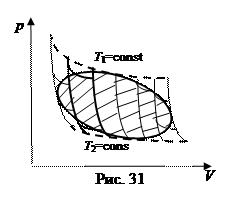 § 6.6. Энтропия. 1. Энтропия (от греч. поворот, превращение) является функцией состояния термодинамической системы в том же смысле, что и внутренняя энергия. Это значит, что каждому состоянию термодинамической системы соответствует определенное значение энтропии. При переходе системы из одного состояния в другое изменение энтропии одинаково для любых процессов, связывающих эти два состояния, а в цикле изменение энтропии равно нулю. Рассмотрим цикл Карно. Его КПД может быть выражен так: h=