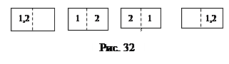 Полученная формула показывает, что термодинамическая система характеризуется некоторой функцией состояния, изменение которой равно приведенному количеству тепла. Эту функцию состояния называют энтропией и обозначают S. Ее изменение в элементарном процессе D S=S 2- S 1= Найдем формулу энтропии идеального газа. Подставим в формулу (6.6.2) формулу первого начала термодинамики для идеального газа: D S= D S= Из (6.6.3) следует формула энтропии идеального газа: S=S0 + Здесь S0 – некоторая постоянная. 2. Выясним физический смысл энтропии. На примере идеального газа мы убедились, что энтропия в каждом состоянии тела имеет определенное значение, и, подобно энергии, является функцией состояния. Энергия характеризует способность тела совершать работу и может быть запасена в виде внутренней энергии термодинамической системы. Рассматривая цикл Карно, мы увидели, что внутренняя энергия нагревателя тем эффективнее превращается в работу, чем больше перепад температур нагревателя и холодильника. Если их температуры одинаковы, то КПД равен нулю, и внутренняя энергия не может работать. Напомним, что в равновесной термодинамической системе температура во всех ее областях одинакова. Следовательно, равновесная термодинамическая система может иметь большой запас внутренней энергии, но совершать механическую работу не может. Говорят, что энтропия – мера «обесцененности» внутренней энергии. Знание энтропии позволяет судить о том, можно ли внутреннюю энергию использовать для совершения работы. Мы уже отмечали, что работать может только неравновесная термодинамическая система. Таким образом, энтропия – мера приближения термодинамической системы к равновесию. Термодинамическое равновесие означает полнейшую идентичность друг другу разных участков системы, т.е. ее полную «хаотизацию», следовательно, энтропия – мера «хаотизации». Больцман, используя статистический метод, получил формулу энтропии в виде: S=к lnW (6.6.5) к – постоянная Больцмана, W – термодинамическая вероятность состояния системы, она равна числу микросостояний, каким может быть получено данное макросостояние. Поясним смысл этих понятий на примере газа. Макроскопическое состояние газа определяют его параметры состояния: давление, объем, температура. Микроскопическое состояние определяется состоянием каждой его конкретной молекулы, т.е. ее положением в пространстве и скоростью. При тепловом движении молекул их состояния меняются хаотически, а состояние газа остается неизменным. Для примера рассмотрим сосуд, в котором содержатся 2 молекулы, каждая из которых может находиться в одной из половинок сосуда, т.е. каждая молекула имеет 2 микросостояния. Пронумеруем молекулы и распределим их в сосуде согласно возможностям хаотического движения. На рис. 32 показан сосуд и молекулы в нем в разных микросостояниях. Общее число микросостояний W, соответствующих данному макросостоянию – в сосуде содержится две молекулы - равно 4, т.е. W =22=4. Заметим, что в равновесном состоянии системы, когда молекулы равномерно распределены по объему, W= 2, а каждому неравновесному состоянию системы – обе молекулы собрались в правой или в левой половине сосуда – соответствует по одному микросостоянию. Добавляя по одной молекуле в сосуд и увеличивая их число до N, получим: W= 2N, причем, равновесному макросостоянию всегда с