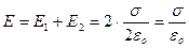 Для пространства между двумя разноименно заряженными плоскостями: