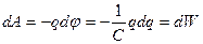 Если соединить пластины заряженного конденсатора проводником, то начнется перемещение электрических зарядов, и конденсатор разрядится. Это связано с определенной работой, которую производят силы электрического поля. В результате энергии поля превратиться во внутреннюю энергию проводника – он нагревается. Подсчитаем эту работу, которая численно будет равна энергии электрического поля конденсатора W. При перемещении заряда q совершается работа , откуда