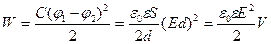 Энергию электрического поля конденсатора можно выразить через напряженность поля Е. Т. к. , то