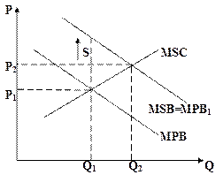 Рыночная цена отражает теперь не только частные затраты производителей, но и внешние затраты. Корректирующая субсидия – это субсидия производителям или потребителям экономических благ, характеризующихся положительными внешними эффектами, которая позволит приблизить предельные частные выгоды к предельным общественным.