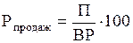где Рпродаж – рентабельность продаж; П – прибыль; ВР – выручка от реализации продукции.