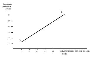 Закон индивидуального спроса по рыночной цене выражает следующую количественную зависимость платежеспособной потребности покупателя от рыночной цены: чем выше цена товара, тем меньше индивидуальный спрос на него. И наоборот: чем меньше рыночная цена тем выше спрос. Теперь рассмотрим влияние рыночной цены на индивидуальное предложение продавца. Опять предположим, что на том же рынке продаются яблоки. Очевидно, наверно, для всех, что при увеличении рыночной цены количество предлагаемых для продажи яблок будет возрастать. Это отражается на графике (рис. 10.).