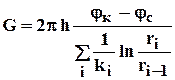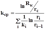 где В - ширина пласта; li, ri - протяженность i - ой зоны или её внешний радиус (r0=rc); При замене зонально-неоднородного пласта - квазиоднородным следует использовать средние эффективные проницаемости: при прямолинейно-параллельном потоке