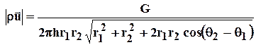 По формуле (4.2) определим потенциальную функцию потока. При этом учтем знаки дебитов: источник G 1= - G, а сток G 2= + G. После подстановки получим: