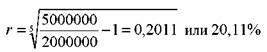 Пример. Р = 2000000 руб., Pп = 5000000 руб., п = 5 лет. Определить доходность в расчете на год. Она равна: