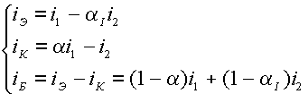 Формально тепловые токи соответствуют токам переходов при обратных напряжениях, много больших u т. Однако реально измеряемые обратные токи переходов транзистора окажутся гораздо больше за счет токов генерации в переходах и токов утечки. (Аналогичная ситуация рассматривалась при анализе p-n-перехода). Поэтому определить значения тепловых токов транзистора можно только по результатам измерений при прямых напряжениях на переходах. Взаимодействие переходов отражено путем введения в эквивалентную схему генераторов тока a i1 и a I i2. Соответственно токи в цепях каждого электрода можно рассчитать по формулам: Классическая модель менее удобна для расчетов, чем передаточная, но широко используется для объяснения работы транзистора.