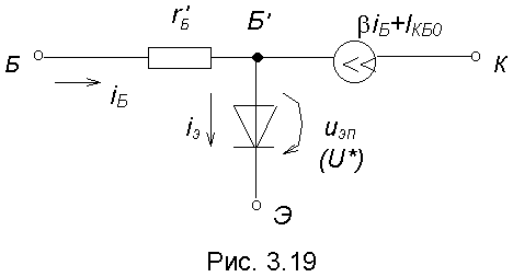 Эквивалентная схема для включения с ОЭ приведена на рис.3.19.