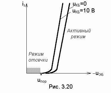Семейство входных характеристик кремниевого n-p-n-транзистора приведено на рис. 3.20. Выражение для идеализированной входной характеристики транзистора в активном режиме имеет вид: