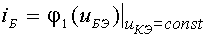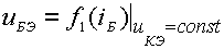 В схеме с общим эмиттером (см. рис. 3.3,б) входным током является ток базы iБ, а выходным - ток коллектора iК, соответственно, входным напряжением является напряжение uБЭ, а выходным - напряжение uКЭ. Входная характеристика в схеме ОЭ представляет собой зависимость