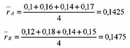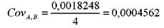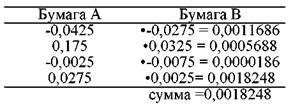 r B — средняя доходность актива В за n периодов; rA — доходность актива А в i-м периоде; rB — доходность актива В в i-м периоде; п — число периодов, за которые регистрировалась доходность активов А и В. Положительное значение ковариации говорит о том, что доходности активов изменяются в одном направлении, отрицательное — в обратном. Нулевое значение ковариации означает, что взаимосвязь между доходностями активов отсутствует. В табл. 7 приведены данные о доходности бумаг А и В за четыре года. Определим ковариацию доходности данных бумаг.