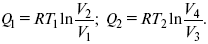 Проанализируем его подробно. Для процесса необходимо «рабочее тело», которое сначала при более высокой температуре Т1 приводится в соприкосновение с горячим телом и изотермически получает от него указанное количество тепла. Затем оно адиабатически охлаждается до температуры Т2, отдавая при этой температуре тепло холодному телу с температурой Т2, а затем адиабатически возвращается в начальное состояние. В цикле Карно Δ U = 0. При проведении цикла «рабочее тело» получило количество теплоты Q1 – Q2 и произвело работу А, равную площади цикла. Итак, в соответствии с первым законом термодинамики Q1 – Q2 = А, получаем: