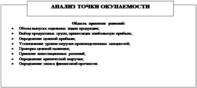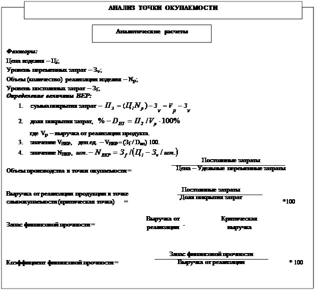 Методы прогнозирования и анализа жизненного цикла товара в основном применяются при разработке плана реализации (продаж) продукции менеджерами – маркетологами. Цель анализа точки самоокупаемости (или критической точки) – определение целесообразных объемов выпуска и допустимого уровня цен реализации продукции конкурентного вида, при которых ее производство становиться прибыльным.
