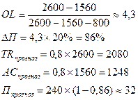 OL показывает, на сколько процентов изменится прибыль при изменении объема продаж на 1%.