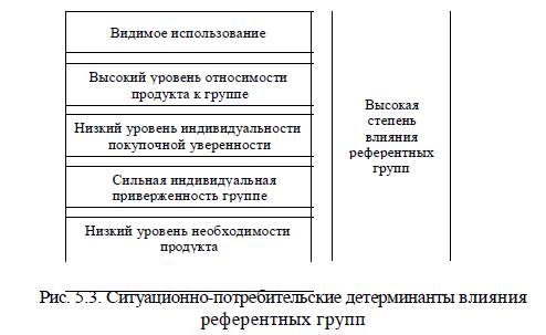 Референтная группа (reference group) — это группа, чья предполагаемая позиция или ценности используются индивидуумом как основа для текущего поведения. Группа принадлежности и референтная группа индивидуума могут не совпадать и оказывать разнонаправленное воздействие на индивидуума. Референтная группа — это группа, которую индивидуум использует в качестве ориентира для поведения в конкретной ситуации. Референтные группы формируют стандарты (нормы) и ценности, детерминирующие перспективу мышления и поведения человека. Solomon Asch (Engel et ai, 1995, p. 716) провел в 1951 г. эксперимент, позднее широко цитировавшийся. Эксперимент показал, что большинство людей не расположены вести себя, противореча групповому консенсусу. В этом эксперименте субъекту предлагалось выбрать одну из трех линий, различных по длине, — ту, что соответствовала по длине четвертой линии. Каждый выбирающий сидел в группе незнакомых ему людей, которых преднамеренно проинструктировали сделать неправильный выбор. Столкнувшись с неверным выбором, субъекты эксперимента делали значительное число ошибок в стремлении к групповому консенсусу. Однако ошибок не происходило, когда другие люди отсутствовали. Первичные и вторичные группы Первичные группы обычно оказывают наибольшее влияние. Это социальные объединения, которые достаточно малы и поэтому позволяют неограниченное взаимодействие «лицом к лицу». Согласие и мотивированное участие — характеристики таких групп. В результате члены демонстрируют рыночное сходство в верованиях и поведении. Семья — Наиболее очевидный пример сильно влияющей первичной группы. Вторичные группы также предполагают контакт «лицом к лицу», однако более спорадичный, менее всеобъемлющий и влиятельный в формировании мышления и поведения. Примерами являются профессиональные ассоциации, профсоюзы, местные организации. Группы устремления и диссоциативные группы Группы устремления (aspiration groups) — это группы, с которыми индивидуум стремится себя ассоциировать. Группы устремления имеют собственные нормы, ценности, поведение. Человек стремится усвоить нормы, ценности и поведение людей групп устремления. Иногда имеет место ожидание включения в группу и мотивация вести себя соответственно. Влияние группы устремления, хотя и не всегда прямое, может играть значительную роль в выборе продуктов. Так, например, показательна реклама моющих средств американской глобальной компании Procter&Gamble для россиян, чей уровень жизни в среднем значительно ниже граждан США. Реклама, отражающая привлекательный жизненный стиль, мечты и стремления аудитории, обеспечивает успех продаж продукции этой компании во всем мире. Диссоциативные группы (dissociative groups) — группы, членства в которых индивидуум мотивированно избегает. Например, группы асоциального поведения, неприемлемого образа или стиля жизни. Например, диссоциативной группой для профессионалов являются безработные, алкоголики, наркоманы, бомжи и даже просто неудачники. Формальные и неформальные группы Формальные группы характеризуются определенным, известным списком членов; организация и структура зафиксированы в письменной форме. Примеры — партии с формальным членством, профессиональные ассоциации, компании и госструктуры. Влияние формальных групп на поведение различно и зависит от мотивации индивиду