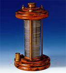 Вольтов столб Он по-своему объяснял необходимость применения наряду с твердыми проводниками — металлами — жидких проводников. По его мнению, при соприкосновении двух различных металлов возникает «электровозбудительная» или «электродвижущая» сила, под действием которой электричество одного знака сосредоточивается на одном из металлов, а электричество противоположного знака — на другом. Если составить столб из нескольких пар различных металлов, например цинка и серебра (без прокладок), то каждая цинковая пластина, заряженная электричеством одного знака, будет находиться в соприкосновении с двумя одинаковыми серебряными пластинами, заряженными электричеством противоположного знака, и их общее действие будет взаимно уничтожаться. Для того чтобы действие отдельных пар суммировалось, необходимо обеспечить соприкосновение каждой цинковой пластины только с одной серебряной, т. е. исключить встречный металлический контакт. Это осуществляется с помощью проводников второго класса (влажных суконных кружков); такие кружки разделяют пары металлов и в то же время не препятствуют движению электричества. Таким образом, Вольта, не поняв действительной причины возникновения тока, практически пришел к созданию гальванического элемента, действие которого основывалось именно на превращении химической энергии в электрическую. Создание первого источника электрического тока сыграло громадную роль как в развитии науки об электричестве и магнетизме, так и в расширении их практических приложений.