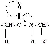p, π - сопряжение в пептидной группе приводит к частичной двоесвязанности С-Nсвязи, что затрудняет вращение вокруг этой связи