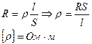 Напряжение – разность потенциалов на концах проводника. U= [U]=B. Электрическое сопротивление - способность проводника препятствовать прохождению в нем электрического тока. [R]=Ом